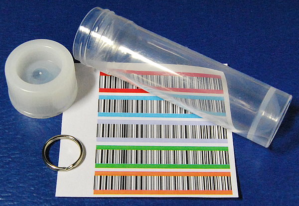 Der Schlüsselring wurde durch Deckel und Röhrchen geführt, wodurch sich der Deckel nicht versehentlich lösen kann. Das Röhrchen hat zwar keine gute optische Qualität, dennoch können die Barcodes problemlos gelesen werden. Ich nutze es für Passwörter und musste das Röhrchen erst nach ca. zwei Jahren wegen diverser Kratzer und Schrammen erstmals ersetzen.